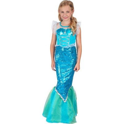 Dětská souprava převleku pro dívku - Mořská panna Balení obsahuje: šaty Velikost: 110 / 120 cm Celková délka: 110 cm Šířka v pase: 30 cm Šířka pod pažemi: 28 cm Délka...
