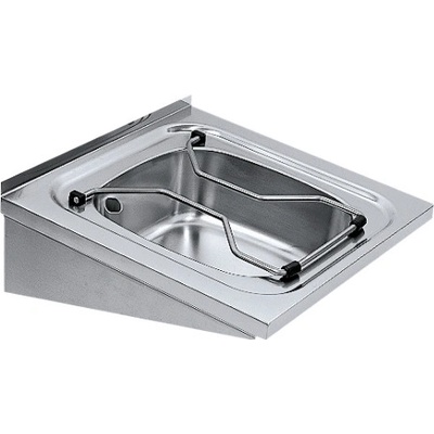 Výlevka k montáži na stěnu, z chromniklové oceli, povrch hedvábně matný, tloušťka materiálu 0,8 mm, beze spár vevařená prohlubeň. Bez místa pro baterii, se sklopným roštem a...