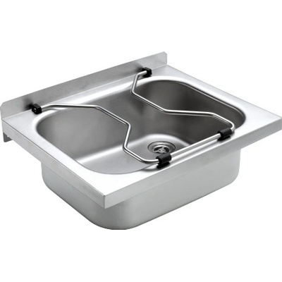 Výlevka k montáži na stěnu, z chromniklové oceli, povrch hedvábně matný, tloušťka materiálu 1 mm, beze spár vevařená prohlubeň, zaoblené hrany, bez plochy pro baterii, sítkový...