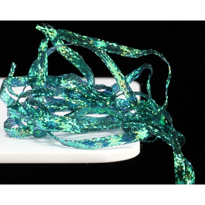 Nová verze pletené stuhy s velmi silným iridiscentním leskem. Vynikající na hřbítky českých nymf, blešivců, kroužkování streamerů a pod. Univerzální šířka cca 3,5 mm.