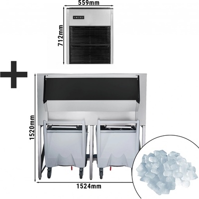 Provedení - Stroj na výrobu ledových kostek vč. zásobníku a 2 přepravních vozíků - Produkce ledu: 335 kg/ 24h - Zásobník na led: 181 kg - Kapacita přepravního vozíku: 112 kg...