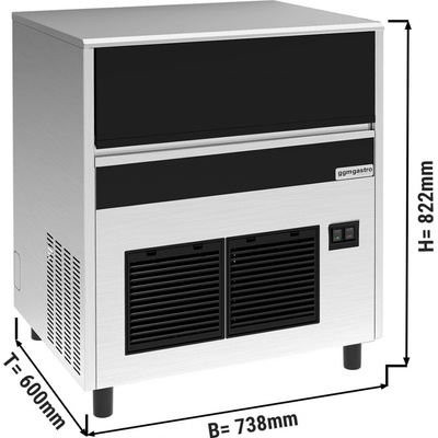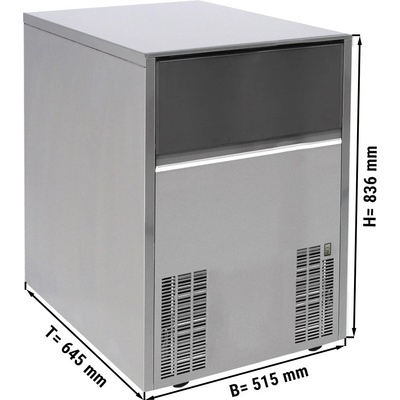 Provedení - Stroj na výrobu kostek ledu - Tvar kostky ledu: Vollwürfel à 12 g oder Halbwürfel à 6 g - Produkce ledu: 155 kg/ 24h - Kapacita nádoby 45 kg - Vypínač pro...