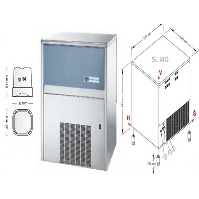 - Vezměte prosím na vědomí, že pro tento spotřebič potřebujete odtok vody Provedení - Stroj na kostky ledu - Tvar kostky ledu: Válec - Produkce ledu: 85 kg/ 24h - Kapacita...