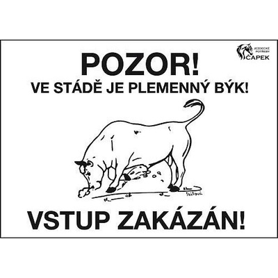 Výstražná cedulka vhodná na upozornění osob, že se na pozemku vyskytuje plemenné zvíře. bílá plastová cedulka s černým potiskem velikost A5 vhodné k připevnění na jakékoliv místo
