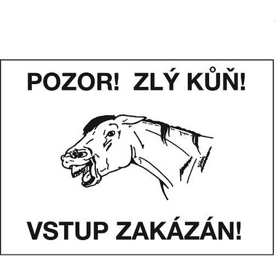 Cedulka A5 z bílého plastu s černým potiskem s vyobrazením hlavy koně pro upozornění osob, že zvíře může být agresivní. - Hmotnost v kg: 0,03 - Materiál /...