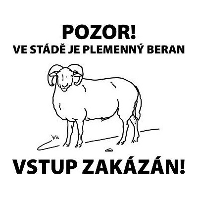 Cedulka rozměru A5 z bílého plastu s černým potiskem s vyobrazením berana s upozorněním, že je ve stádě plemenné zvíře. - Hmotnost v kg: 0,03 - Materiál /...