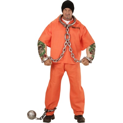 KOSTÝM VĚZEŇ POMERANČOVÝ S TETOVÁNÍM M Sada obsahuje: - mikinu - rukávy s tetováním - kalhoty Mikina se obléká přes hlavu. Je ozdobena potisky nápisů na hrudi a na...