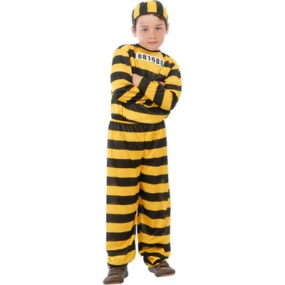 Černo-žlutý kostýmek malého vězně obsahuje tričko, kalhoty a vězeňskou čepičku. Další velikosti viz. 81108, 81109.