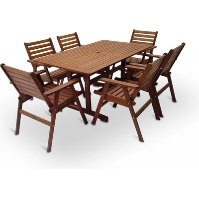 Luxusní masivní stolová sestava 6-ti křesel a stolu z exotického, velice trvanlivého a tvrdého dřeva meranti.Určeno do exteriérů, interiérů a pergolových prostor. Není vhodné pro používání ve vlhkém prostředí bez vhodné impregnace. Rozměry stolu: 150x90x74 cm, Rozměr...
