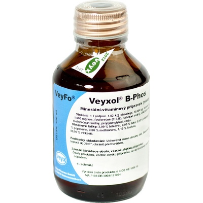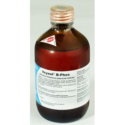 Emulze na minerální bázi obsahující fosfor a vitamín B12. Veyxol B-Phos 100ml z kategorie Vitamíny pro hospodářská zvířata Veyx . Emulze na minerální bázi obsahující fosfor a vitamín B12. Doplnění výživové potřeby organismu. Podává se v období zvýšené zátěže (porod,...