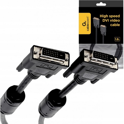 Kabel s konektory dual link DVI-D na obou koncích, verze samec-samec, stíněný kabel, pro přenos digitálního video signálu. Disponuje 24 + 1 pinem. Délka 1,8 m.