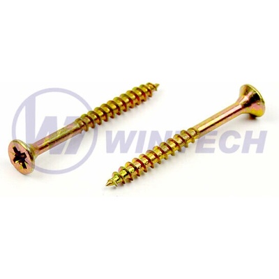 WINTECH AAABE45090CB5K Vrut do dřeva průměr 4,5 mm, délka 90/60 mm, balení 50 ks, zápustná hlava, částečný závit, křížová drážka pozidriv, zinek žlutý. Částečný závit umožňuje...