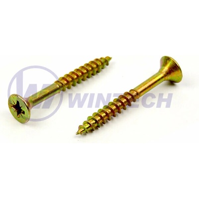 WINTECH AAABE45040CB4K Vrut do dřeva průměr 4,5 mm, délka 40/24 mm, balení 50 ks, zápustná hlava, částečný závit, křížová drážka pozidriv, zinek žlutý. Částečný závit umožňuje...