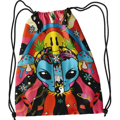 Praktický vak na záda se šňůrkami, který je vyroben z pevného, odolného materiálu.