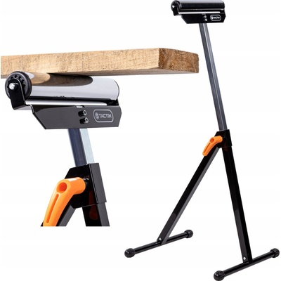 Válečkový stojan TACTIX, výška 695–1100 mm Skládací válečkový stojan TACTIX je určený pro snadnou manipulaci s dlouhými kusy materiálu při řezání, hoblování nebo jiném opracování. Stojan je vyroben z pevné kovové konstrukce, výšku lze snadno nastavit pomocí...