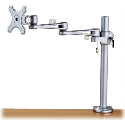 Držák LCD displeje, rameno 45cm, 4 klouby. Montáž na stůl.; Použití: Pro upevnění displeje na stůl.; Nosnost: 10kg; Počet kloubů: 4; Podpora: VESA 75, 100; Další informace: - montáž displeje na tyč (výška 45cm) připevněnou na stůl\; Barva: stříbrná; Materiál:...