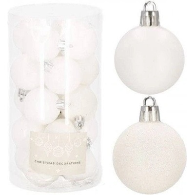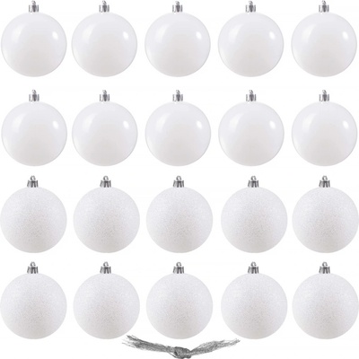 - Značka: Springos - Barva: odstín bílé - Materiál: syntetický materiál/plast - Velikost: 8 cm - Množství: 20 kusů koulí - Vzor: matný - Výhody: nerozbitné, stříbrné šňůrky na...