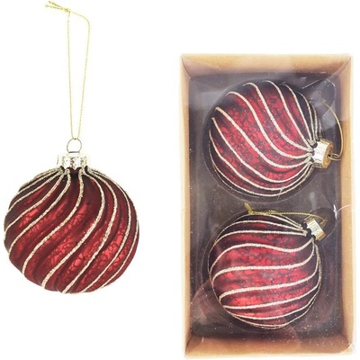 Vánoční skleněné ozdoby červené, 2 ks Barva: červená, zlatá Rozměry: průměr 8 cm Materiál: sklo Sada krásných vánočních ozdob. Sada obsahuje 2 ozdoby v krabičce.