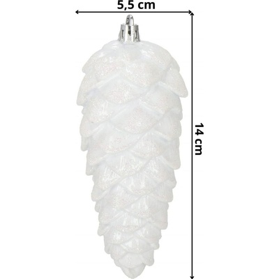 Základní údaje - Značka: Springos® - Materiál: plast - Barva: bílá - Počet kusů v sadě: 6 - Nerozbitné koule - Typ: lesklé / třpytivé - Tvar: šiška - Provázky na zavěšení v...