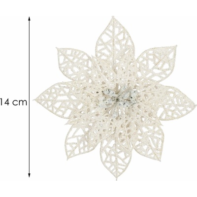 Umělý květ růže s klipem dokonale doplní vánoční výzdobu. Detailně prolamovaný vzor, elegantní třpytky, spodní klip pro snadné uchycení. Velikost 11x11 cm, bílá barva. Prémiová...