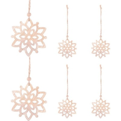 Sada šesti kusů nádherně vyřezávaných ozdob ve tvaru květin. Výška 7 cm, přírodní materiál, provázek na zavěšení. Ideální k výzdobě stromečků nebo jako vánoční dekorace. Sada...