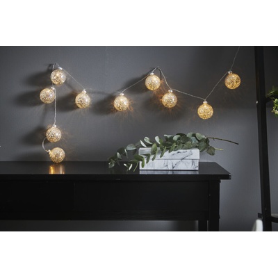 Řetěz s 10 LED osvětlenými skleněnými koulemi. Napájení z baterie. Vestavěný časovač. Pro vnitřní použití. Barva světla: teplá bílá. TECHNICKÁ DATA Produktová řada: GLITTER...
