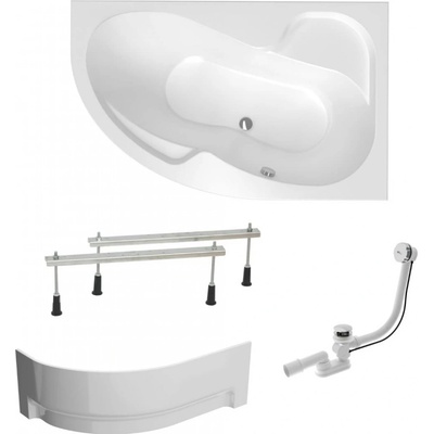 Asymetrická vana vyrobená z akrylátu, tloušťka materiálu je 5 mm. Určení vany - pravá orientace. Objem vany je 210 litrů. Včetně sifonu, nožiček, čelního a bočního...