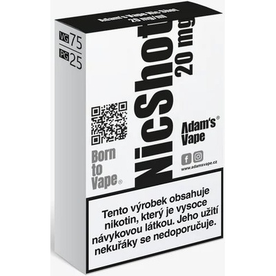 ADAM'S VAPE NICSHOT 5x10 ml 20mg/ml VG75/PG25 Nikotinový booster 20 mg/ml pro míchání e-liquidů. Boostery Adam's Vape jsou vyrobeny z nejkvalitnějšího PG a VG farmaceutické...