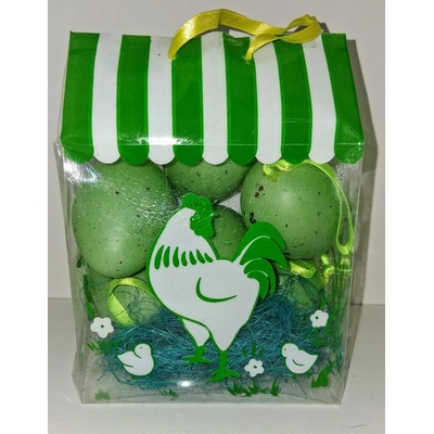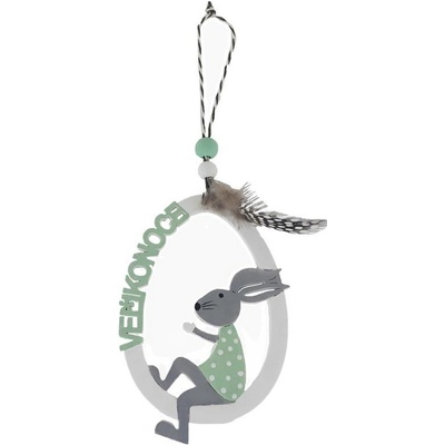 Velikonoční dekorace k zavěšení. Rozměry : 8,5 x 11,5 cm, tloušťka 0,4 cm. Barva : kombinace bílá, zelená, šedá. Materiál na bázi dřeva. Rozměry: 8,5 x 0,4 x 11,5 cm. Materiál:...