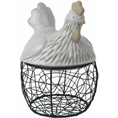 košík na vajíčka s keramickou slepicí jako víkem — velmi oblíbená dekorace do kuchyně nebo na velikonoční období. Rozměry: 13,5 x 13,2 x 18,4 cm. Materiál: keramika, kov....