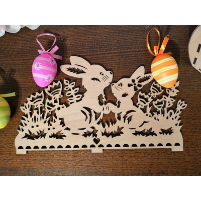 Krásná velikonoční dekorace ze dřeva na podstavci. Provedení Dva ušáci, Dvě pipinky a Zahrádka. Ušáci a pipinky délka cca 36 cm, zahrádka délka 44 cm. Dodáváme v rozloženém...