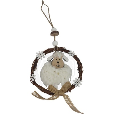 Velikonoční dekorace k zavěšení. Rozměry: 10 x 1,5 / 10 cm. Materiál: dřevo, textil. Barva: přírodní, bílá. Tento výrobek není hračka.