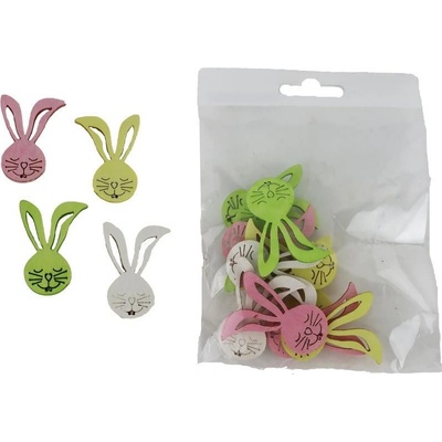 Sada dekoračních zajíčků. Sada obsahuje 12 přízdob. Rozměry: 3 x 0,2 x 4 cm. Materiál: dřevo. Barva: bílá, zelená, žlutá, růžová. Není hračka. Plastový obal odstraňte z...