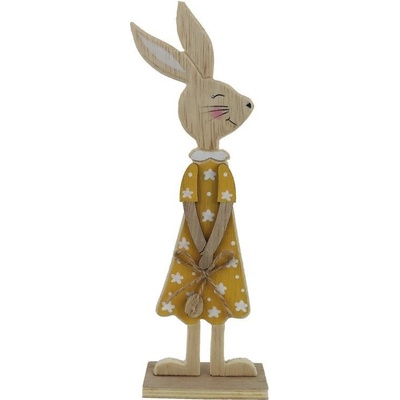 Dekorační velikonoční zajíček. Rozměry: 7,5 x 4 x 23 cm. Materiál: dřevo. Barva: přírodní, žlutá. Tento výrobek není hračka.