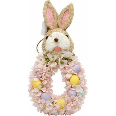 Tento slaměný věnec PRK1003-L o průměru 30 cm je zdobený umělými vajíčky, květy a pírky, což z něj činí ideální velikonoční a jarní dekoraci. Je vhodný na pověšení na dveře nebo...