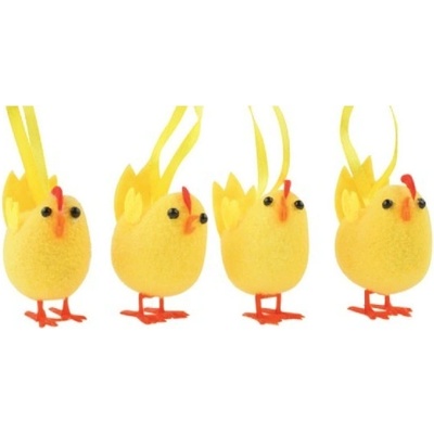 Kuřátka na zavěšení. Kuřátka využijete k tvorbě velikonočních dekorací. Můžete je použít k ozdobení věnců či vazeb, nebo je třeba pověsit na větvičku. 4 kusy v balení.