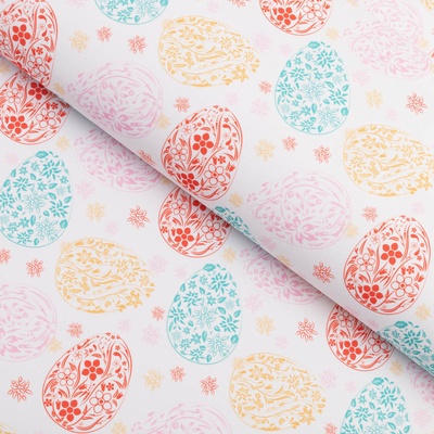 Polyesterová látka s vodoodpudivou a nešpinivou teflonovou úpravou, s velikonočním vzorem barevných kraslic na bílém podkladu. Je stálobarevná, nesráží se a velmi snadno se...