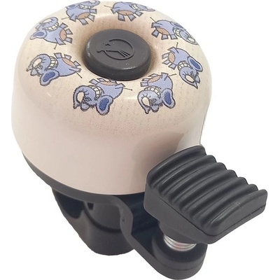 Paličkový klinkací zvonek Velobel Průměr: 35 mm Barva: bílá+ potisk slon Materiál: hliník + plast Hmotnost: 21 g Objímka: 22,2 mm Nebaleno.