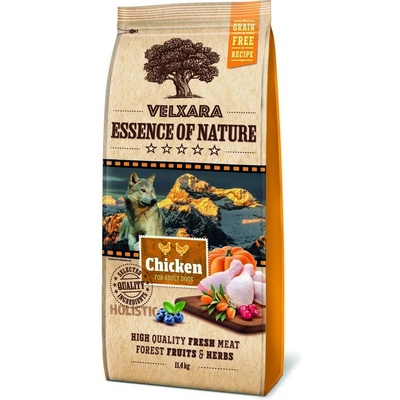 VELXARA - Essence of Nature Dog GF Adult Chicken 11,4 kg Kompletní holistické krmivo pro dospělé psy - celostní granule pro psy extrémně bohaté na čerstvé kuřecí a dehydrované krůtí (masová složka celkem: 55 %) s červenou čočkou. Vysoce kvalitní složení krmiva...