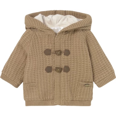 MAYORAL dětský kabátek s kapucí hnědá vel. 60 cm Dětský kabátek s kapucí. Zapínání vpředu na zip a knoflíky. Pletenina, měkká a příjemná na pokožce. Funkční kapsy na přední...