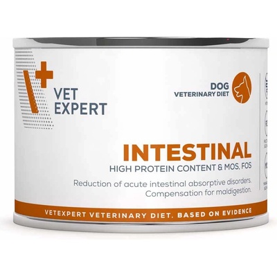 Konzerva VET EXPERT 4T Intestinal Dog 400g Dietní mokré krmivo pro psy s gastrointestinálními poruchami Specifikace produktu - kompletní a vyvážené dietní krmivo pro dospělé psy - jehněčí s brambory - pro psy s poruchami trávicího traktu, trávení/vstřebávání a pro...