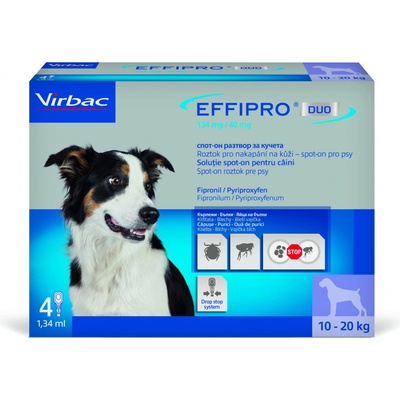Effipro DUO Dog L (20-40kg) 268/80 mg, 4x2,68ml Antiparazitikum pro psy EFFIPRO® DUO je unikátní kombinace pyriproxyfenu a fipronilu. EFFIPRO® DUO se aplikuje při napadení...