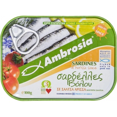 Vialco Ambrosia sardinky (sardina pilchardus) v omáčce Arissa 100g Konzervováno do 24 hodin po rybaření Složení: Sardinky (Sardina Pilchardus Walbaum) Náš příběh od roku 1928...