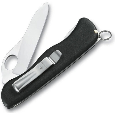 VICTORINOX Nůž kapesní SENTINEL s klipem rovné ostří 111mm ČERNÝ Počet funkcí 5. Rovné ostří, klip pro zavěšení. - velký zavírací nůž s očkem pro rychlé otvírání se zubatou čepelí - nerezový kroužek na klíče - pinzeta - párátko