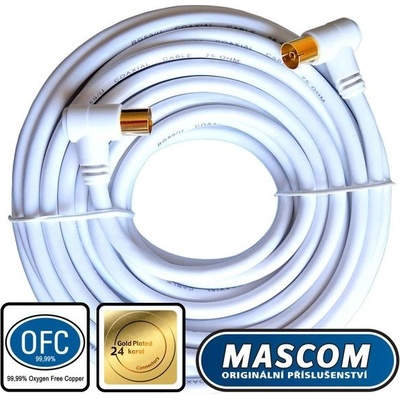 Účastnický koaxiální kabel Typ: IEC male/female Dvojité stínění: ano Kabel: OFC 99,999 % Délka: 10 m Pozlacené konektory: ano Úhlové (90°): ano Pro HDTV / FULLHD televizory...