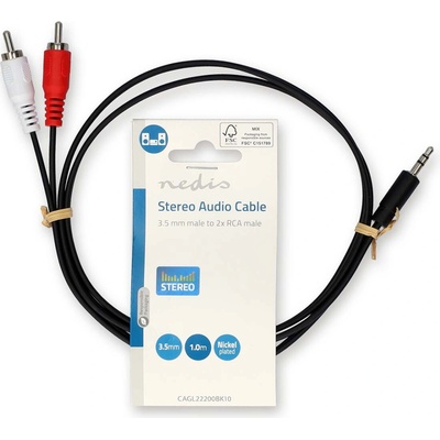 Nedis 3,5 mm jack (M) na 2× RCA (M) 1 m Tento stereo audio kabel s 3,5 mm jack a dvěma RCA konektory lze použít k připojení zařízení, jako je například MP3 přehrávač nebo...