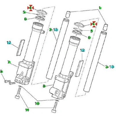 Standardní sada pro repasi přepákování přední vidlice od výrobce CIF. Sada obsahuje čepy osy přepákování, dorazy a pružiny jak je na obrázku. Pasuje na následující...