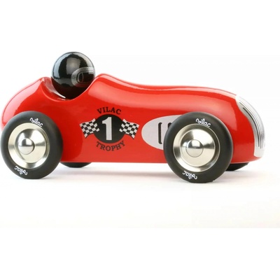 Červené vintage závodní auto vyrobeno z lakovaného dřeva s kovovými pogumovanými koly. Je vhodné jak ke hraní tak jako dekorace do pokojů dětí či dospělých. Vyrobeno ve Francii. Hračky Vilac mají znač