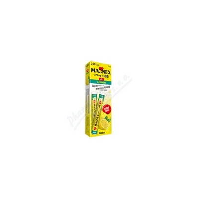 Magnex 375mg + B6, 2x 20 šumivých tablet, každá obsahuje 375mg hořčíku v jedné rozpustné tabletě a 2, 2mg pyridoxinu (B6) - slouží k usnadnění vstřebávání hořčíku organismem.