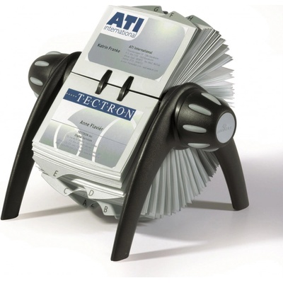 Robustní černá kovová základna. Obsahuje 24 abecedních rozdělovníků (A-Z). Pojme 200 listů vizitek.
